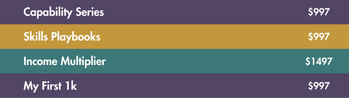 Inside Income Multiplier, you’ll learn how to increase your income by mastering value creation and money skills in your own life — not just teaching them.